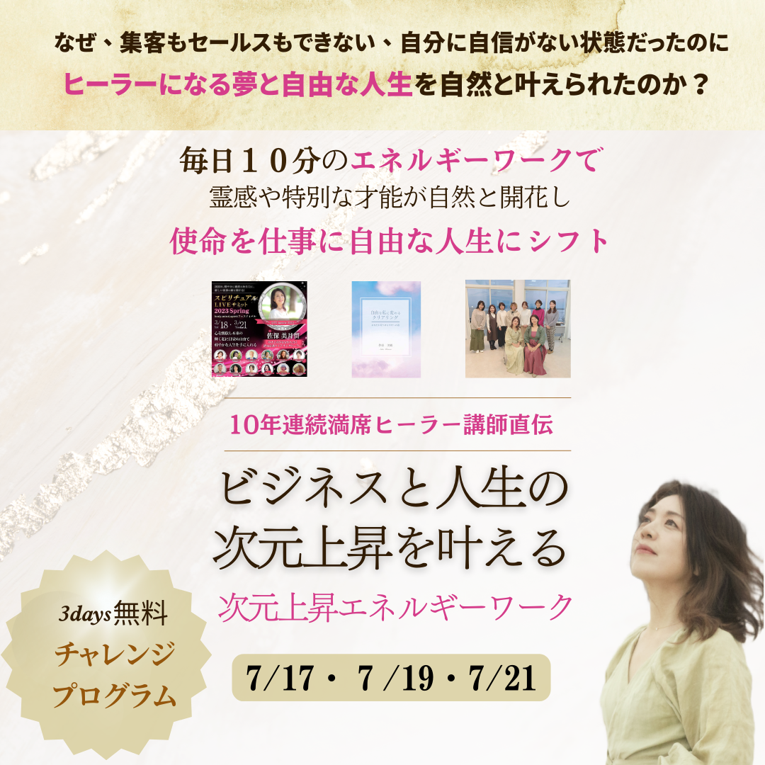 10年連続満席の、ビジネスと人生の次元上昇を叶える3days無料チャレンジプログラムは今だけ!